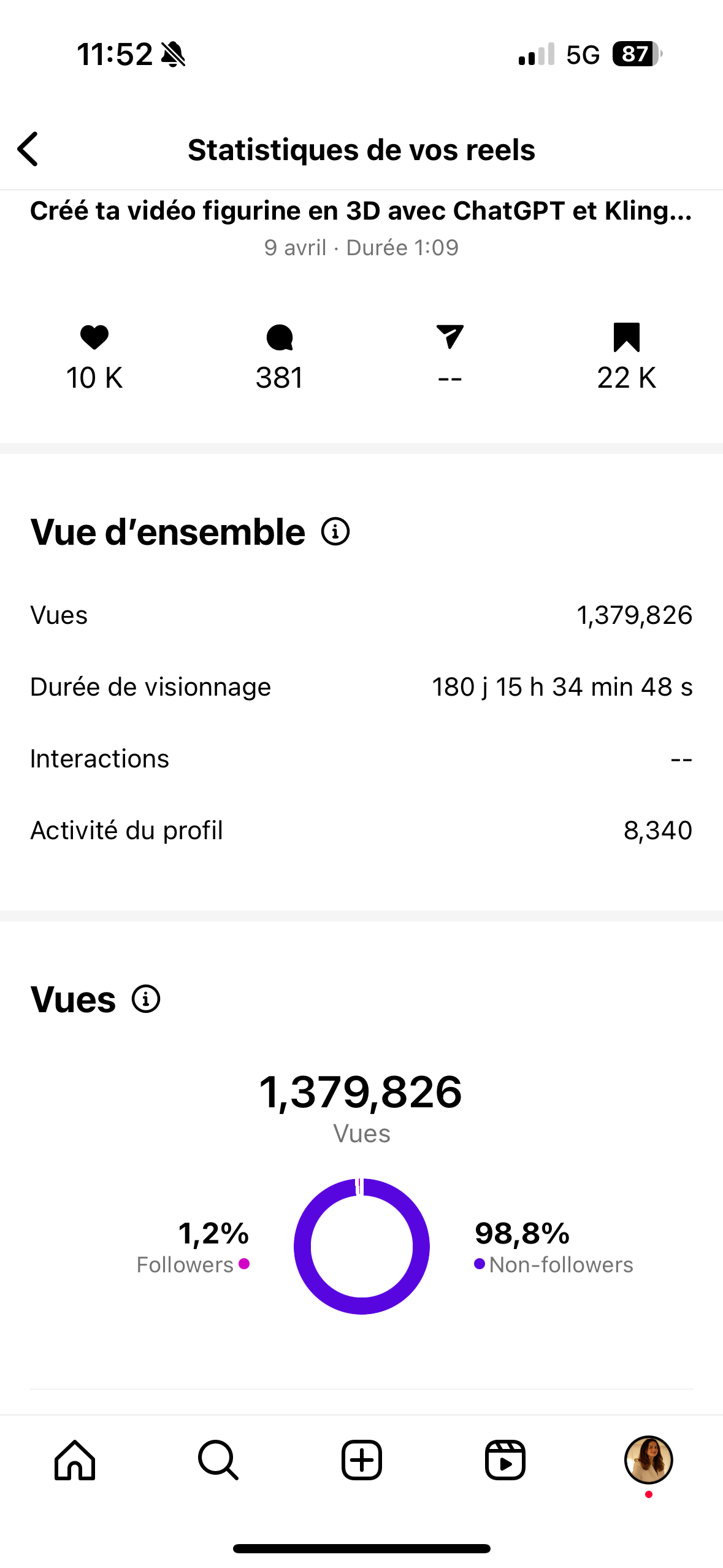 Les premiers résultats peuvent apparaître très rapidement, parfois dès la publication de votre premier Reel, puisqu’Instagram met en avant les contenus vidéos.